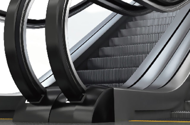安装于围裙板两侧位于梯级上面色围裙板刷以避免乘客的鞋子碰檫围裙板和能安全有效地防止异物被带入梯级。